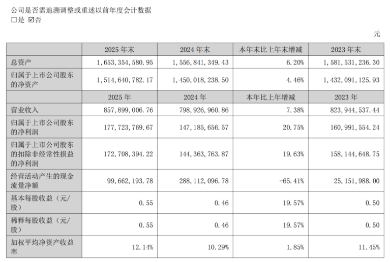 2025年,面对稀土价格波动等市场环境,公司凭借稳定的供应链与成熟的生产工艺保障业绩增长。全年加权平均净资产收益率达12.14%,较上年提升1.85个百分点;归属于上市公司股东的扣除非经常性损益净利润1.73亿元,同比增长19.63%,盈利能力持续优化。产品需求端受益于汽车智能化、节能电机普及等趋势,汽车用磁体等细分领域需求稳步增长。