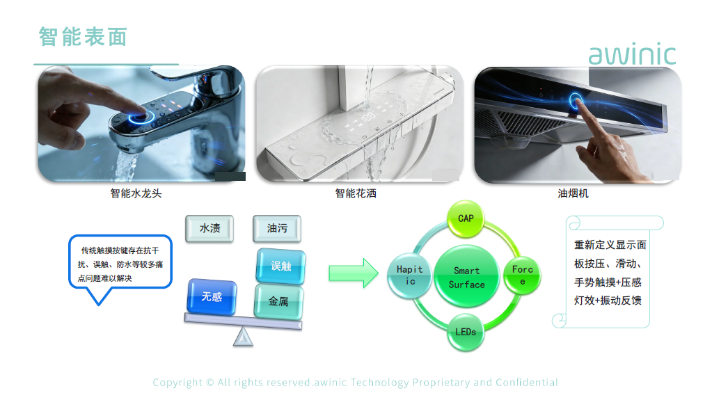 在本次的海尔科技日交流中,Sensor与呼吸灯产品线围绕感知与执行的主题,赋予智能家电生命力与活力,完美诠释了人们对美的追求和对情绪价值的需求。此外,通过引入Force、Cap、LED、Hapitic,四合一的Smart Surface(智能表面)概念,重新定义了家电显示面板,创造了新型智能交互体验。