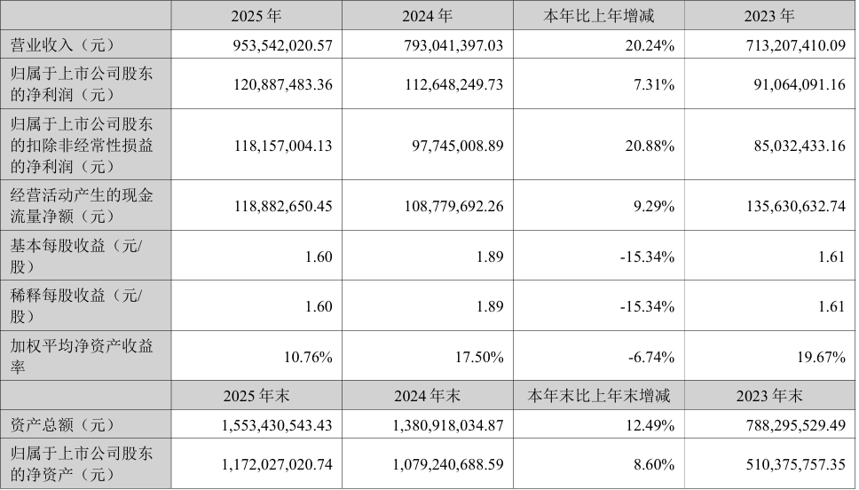 4月10日,深圳市强达电路股份有限公司正式发布2025年年度报告。年报显示,2025年强达电路实现营业总收入9.54亿元,同比增长20.24%;归属于上市公司股东的净利润1.21亿元,同比增长7.31%;归属于上市公司股东的扣除非经常性损益的净利润1.18亿元,同比增长20.88%;经营活动产生的现金流量净额1.19亿元,同比增长9.29%。截至2025年末,公司总资产15.53亿元,归属于上市公司股东的净资产11.72亿元,整体资产质量优良。