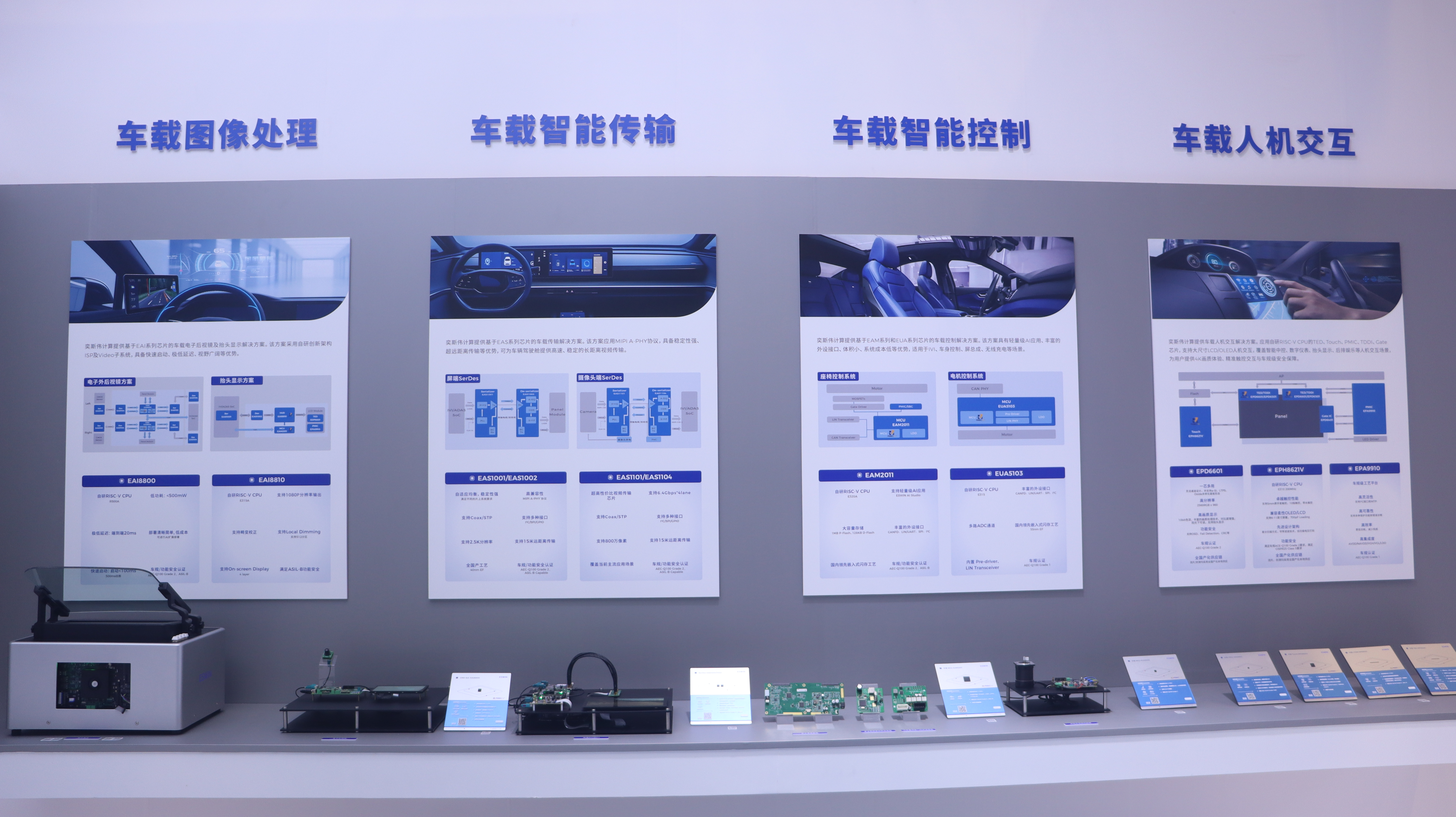 作为基于RISC-V架构的芯片产品提供商,奕斯伟计算携智能汽车芯片及解决方案亮相,展示了车载控制MCU、高速视频传输(SerDes)、电子后视镜(CMS)、抬头显示(HUD)、触控交互、电源管理等多维芯片产品与方案,以自研RISC‑V技术底座为支撑,为智能座舱与车身控制等领域提供高可靠、低时延、高安全性的芯片支撑。