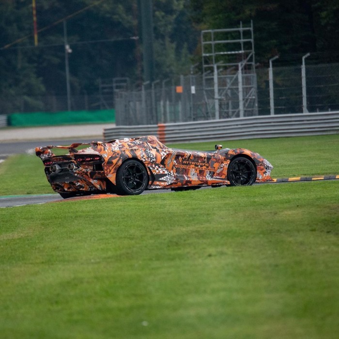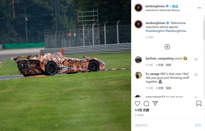 兰博基尼周四在其Instagram账号上发布了这款车。基于迷彩的相似性,估计这款新的跑车可能是几个月前首次亮相的超级跑车SCV12的无车顶版。这款赛道跑车拥有一台自然吸气的V12,输出功率超800马力。另外它也可能是拿掉车顶的Aventador SVJ Roadster跑车,此外,其还可能采用了类似于Sian混动车和SC18 Alston的设计。