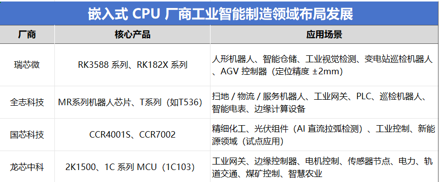随着工业4.0与物联网深度融合,叠加人形机器人技术爆发,工业智能制造正迎来规模与质量双重跃升的关键期。嵌入式CPU作为智能设备的“核心大脑”,成为支撑工业自动化、智能机器人等场景的核心支柱,国际巨头与国产厂商纷纷加码布局,推动产业生态持续升级。