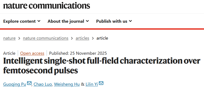 近日,上海交通大学集成电路学院(信息与电子工程学院)义理林教授课题组智能光纤系统实验室(LIFE,Laboratory of intelligent fiber ecosystem)在超快光学测量领域取得重要进展,研究团队提出了一种基于线性光谱剪切干涉(LSSI)与AI相结合的智能单帧全域表征技术(ISFC),成功摆脱了传统飞秒脉冲测量对非线性效应的依赖和测量速度慢的问题,实现了对皮焦级微弱飞秒脉冲的单帧全域(强度和相位)精确测量。相关成果以“Intelligent single-shot full-field characterization over femtosecond pulses”(飞秒脉冲智能全域单帧测量)为题发表于《Nature Communications》。