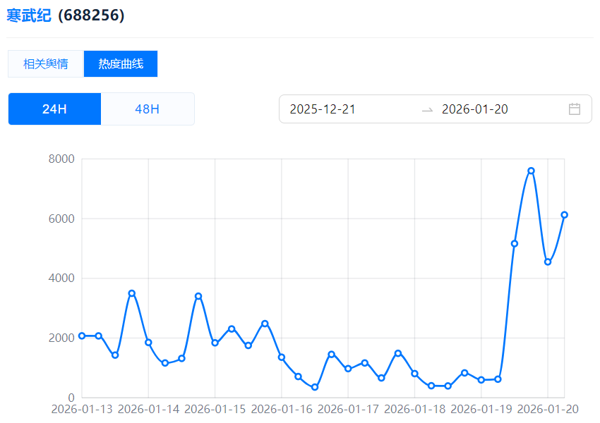 【上市企业热度观测日志】1月20日:寒武纪、中微半导、航天科技占据热度前三甲