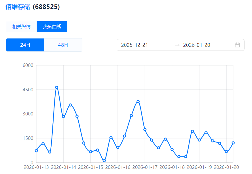 佰维存储:截至1月20日收盘,公司股价上涨8.61%,成交额达84.41亿元。在前期业绩预增背景下,股价的持续活跃表现维持了高关注度。