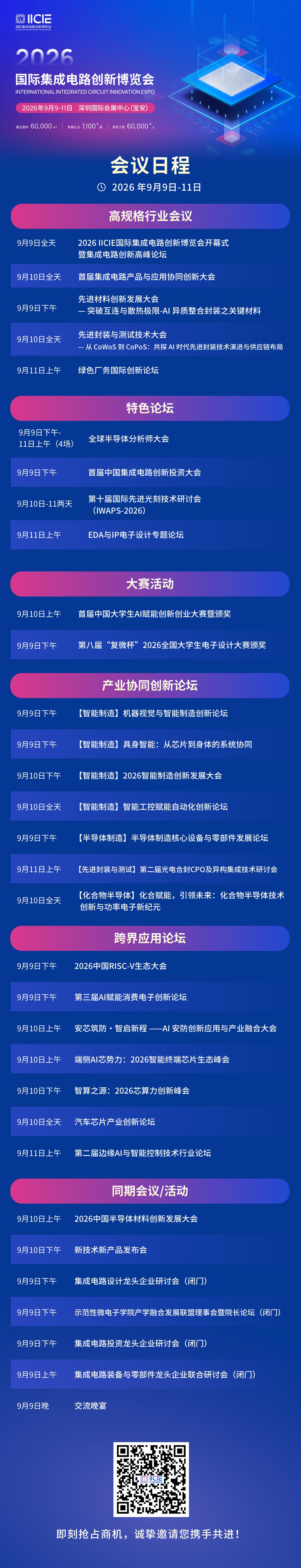 9月9日-11日,2026国际集成电路创新博览会(IICIE)将在深圳国际会展中心(宝安)盛大启幕,以“跨界融合・全链协同,共筑特色芯生态”为主题,构建覆盖集成电路全产业链的高端交流平台。